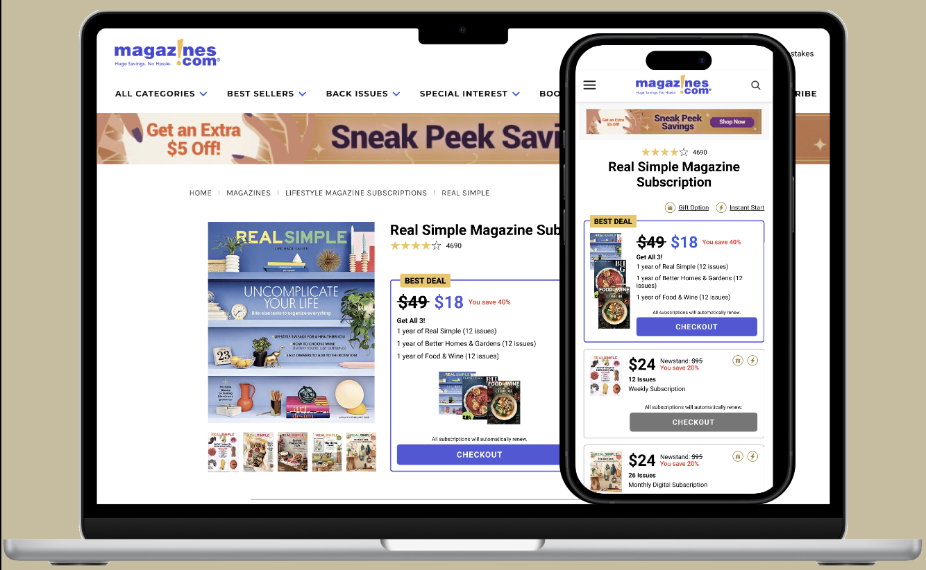 Optimizing Magazine.com Product Details page and Subscription Checkout Experience